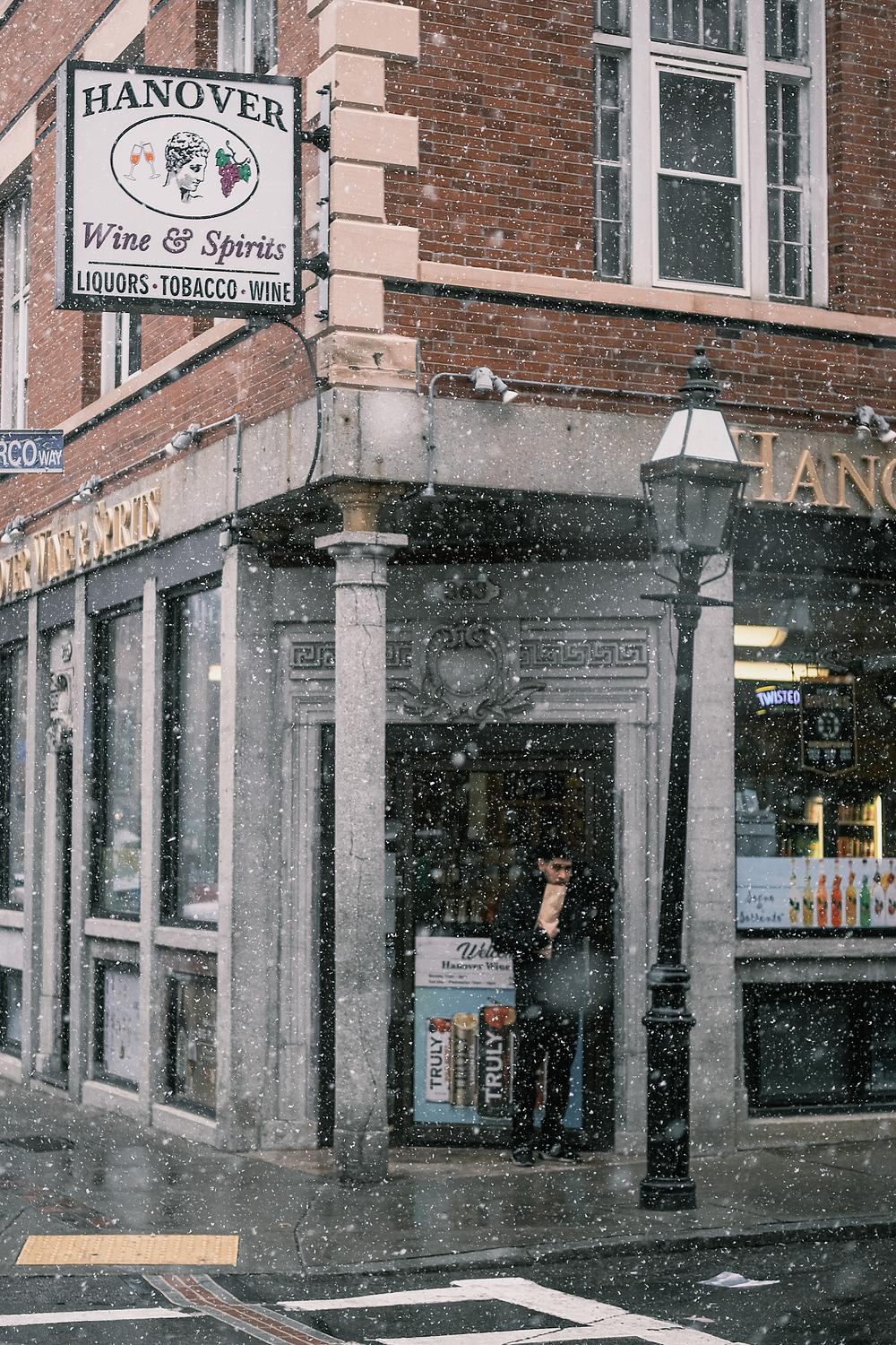 This photograph was taken on a snowy day in Boston's North End using a Fujifilm X-Pro3.