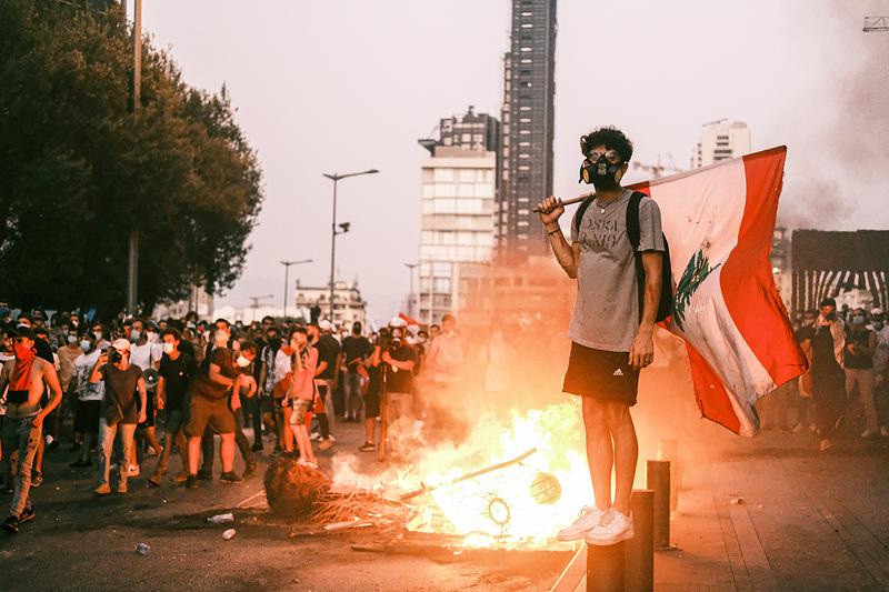 Taken exactly one year after the Beirut blast during the protests in Downtown Beirut.